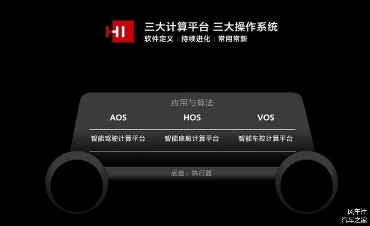 HI包括三大计算平台,智能驾驶计算平台、智能座舱计算平台和智能车控计算平台,以及三大操作系统AOS(智能驾驶操作系统)、HOS(智能座舱操作系统)和VOS(智能车控操作系统)。可以利用强大的算力和操作系统的支持,实现软件定义汽车,并对汽车持续展开开发功能,不断提升和优化消费者的用车体验,做到常用常新。