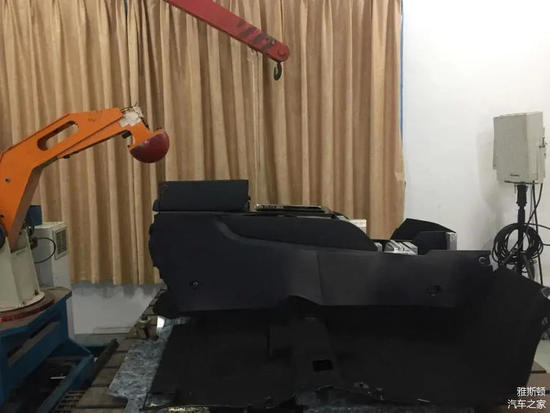 红色的锤头模拟的就是人的头部。上图为某款车型,其扶手箱采用了对开方式,被撞开的尖角是很危险的。