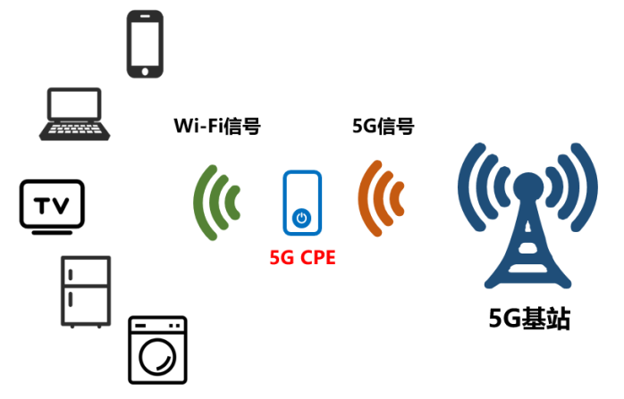 5G CPE,属于一种5G终端设备。它接收运营商基站发出的5G信号,然后转换成Wi-Fi信号或有线信号,让更多本地设备(手机、平板、电脑)上网。