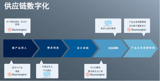 Kevin介绍,在供应链数据化方面,Sourcengine在新品导入、需求创造、设计采纳、企业采购和产品生命周期管理上都会实现数字化管理。在这个平台,电子工程师和专业采购可以浏览、购买数量高达5.5亿个单独的电子元器件。此外,通过线上平台搜索引擎,帮助客户在浩如烟海的全球元器件市场中准确定位所寻产品,客户能够精准查询到库存、即时报价、产品数据表、产品技术及合规性等所需信息。如果这款元器件恰好没有现货库存,Sourcengine可以立即提供货期信息和替代型号的现货。