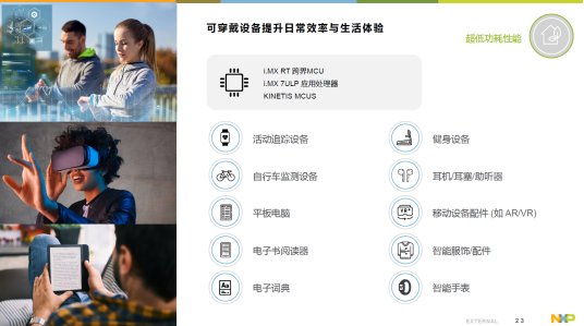 此外,他还强调了可穿戴设备方面的发展前景,此领域有着很多看似矛盾的要求,消费者需要它在提供出色的用户体验同时具备超低功耗性能。这里NXP的产品能够支持图像与外部世界连接,具备出色的计算能力,并且在设备非活跃状态或者休眠状态下支持极致的低功耗模式以节约电量。