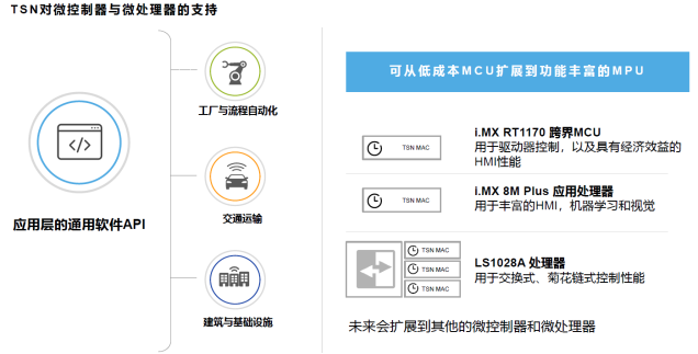 据NXP边缘处理事业部高级总监兼工业业务线总经理Jeff Steinheider介绍,NXP应用层的通用软件可支持不同的产品,包括MCU和高性能的MPU。在TSN市场有很多的应用,从工厂与流程自动化、交通运输到建筑与基础设施。NXP已经把TSN技术融入到三款产品当中,包括i.MX RT1170跨界MCU,i.MX 8M Plus以及LS1028A处理器。面向未来,TSN技术将会在更多产品中获得更多应用。