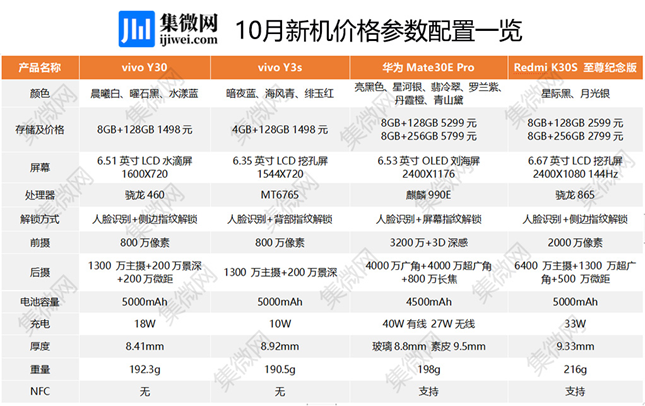 10月份是一年中发布会最多的,大家期待的苹果和华为都将发布自家期间手机,临近双十一,其他厂商也会趁机发布高性价比的机型争抢用户。这段时间发布的新机较多,从期间到中低端机型都有,哪款机型更适合购买呢?我们先来看看参数配置。