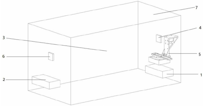 图1是该专利提出的一种小型化毫米波射频测试平台,主要包括桌面暗箱3以及安装在桌面暗箱3内部的近端平台1、远端平台2、待测物4、射频工装5及射频收发模块6。
