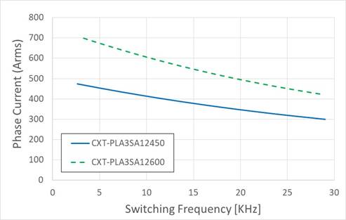 图4 CXT-PLA3SA12450AA的相电流(Arms)与开关频率的关系