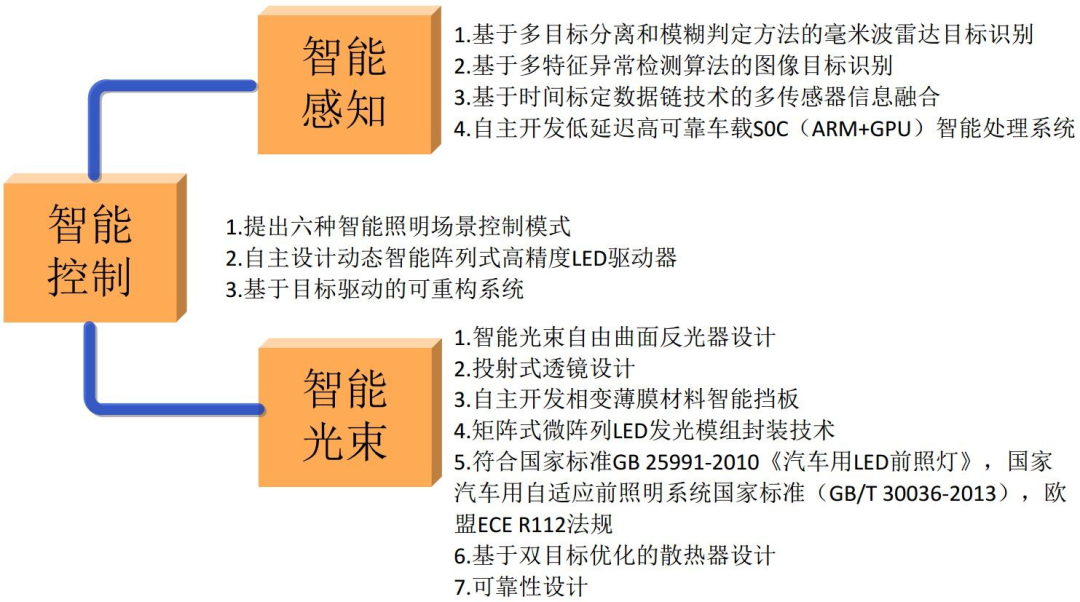 智能化 LED 汽车前照灯能够做到智能感知、智能控制、智能光束的特点。