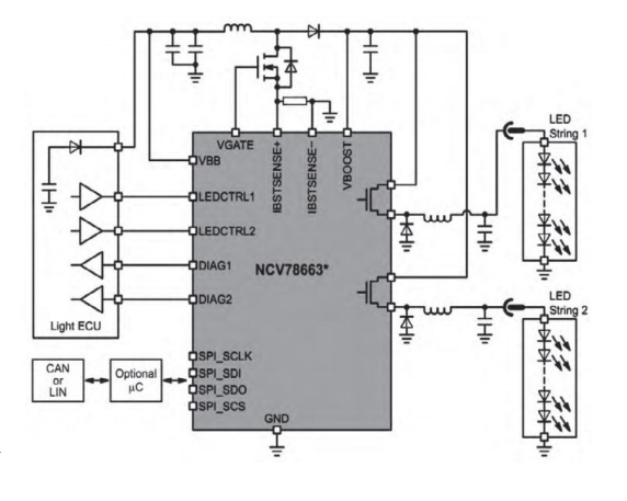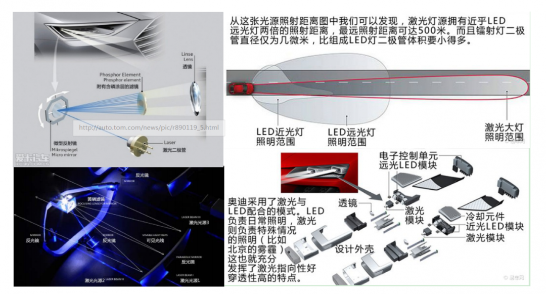 LED 作为一种新型的固态光源,具有开关速度快、发光效率高、寿命长等优点,目前已广泛应用于汽车前照灯。