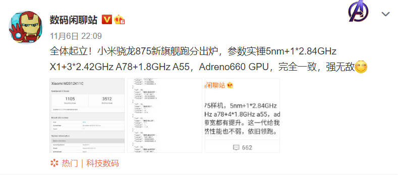 2020年11月07日 | 搭载骁龙875,小米新旗舰跑分揭秘
