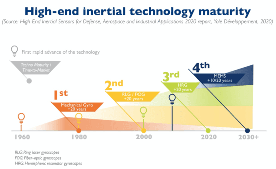 传统的机械模型正在让步给较新的技术,其中包括正在逐步改进的 MEMS 技术。MEMS 单元可能会侵蚀 FOG 技术今天可以解决的某些问题,但将来不太可能取代 HRG 和 RLG 技术。预计将增长到足以使 MEMS 失去低端地位的同时,仍将保持增长并提高自己的地位。