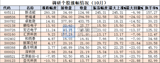调研个股10月涨幅(新洁能除外)
