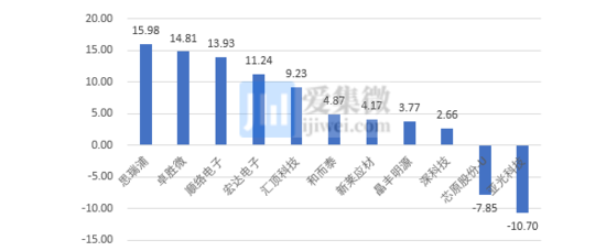 据wind统计,在12家机构调研的半导体企业中,三季报披露净利润同比实现正增长的企业有8家,平均净利润增长率为18.62%;其中,卓胜微、思瑞浦、深科技、新洁能4家公司净利润增幅超过50%。
