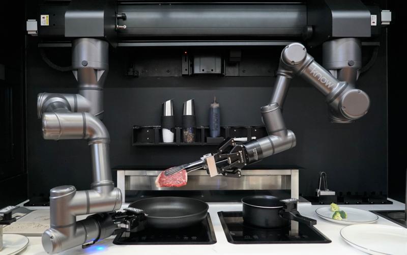 如影咖啡机器人通过自研的 inBot OS 智能学习系统控制两台 UR 协作机器人,重复定位技术可达±0.1mm,轻松模拟咖啡大师打发奶泡、拉花等一系列高精度操作,为用户制作口感上乘、拉花精美的精品咖啡;如影厨房机器人可以复刻烹饪大师的厨艺,让客户在家就可以享受米其林级美味。该款厨房机器人由德国红点奖获奖设计团队打造,隐藏式机械臂设计,融合科技与人性化,为客户呈现全新的智能厨房科技美学。