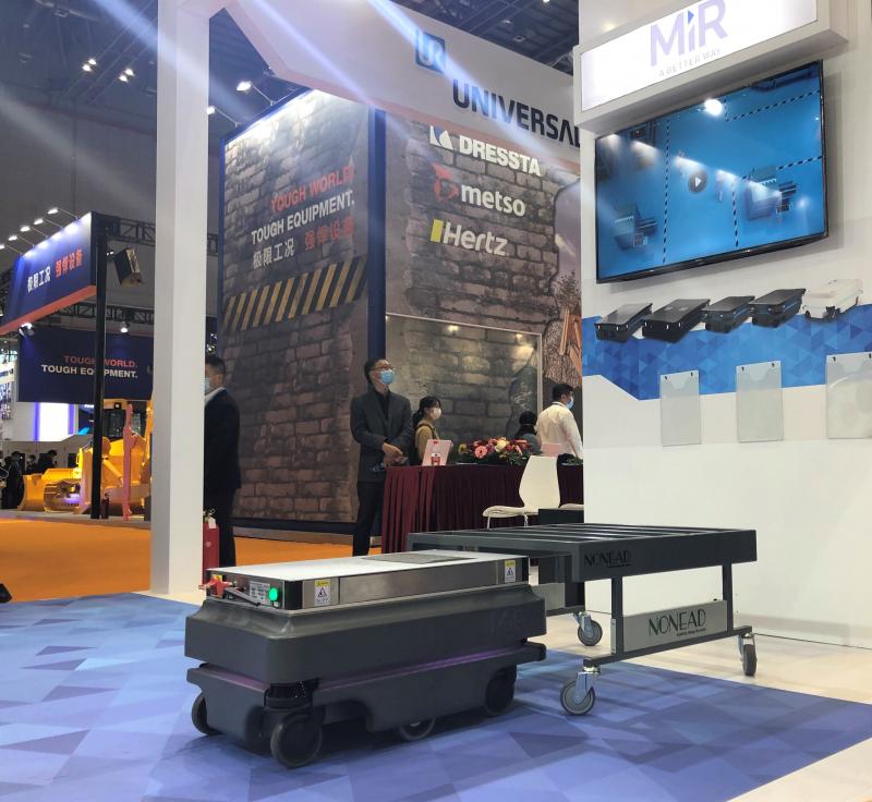 此外,与 UR 同隶属于泰瑞达公司的名傲移动机器人(Mobile Industrial Robots,下简称为 MiR)在现场展出搭载拓德 MiR 底部牵引系统的 MiR200 自主移动机器人。这款开箱即用解决方案在大幅降低机器人集成复杂性的同时,有效提升企业的生产效率,优化用户的内部物流工作,适用于汽车、3C、物流及生命科学等行业。MiR 的自主移动机器人还可以搭配 UR 的机械臂,“手脚并用”,轻松完成上下料移动搬运等任务。