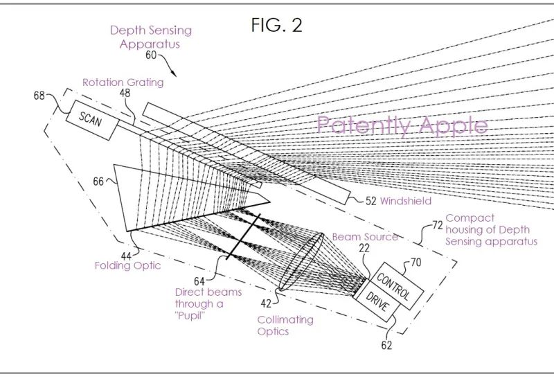 苹果公司于 2020 年 3 月提交了一份关于车载激光雷达设备的专利申请,该设备设计用于安装在车辆挡风玻璃后面,可为自动驾驶汽车提供实时 3D 视觉。