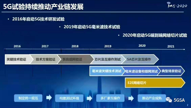 我们从2016年开始启动了整个5G技术的研发实验,中间历时三年,包括关键技术、技术方案,还有系统组网的一个验证。