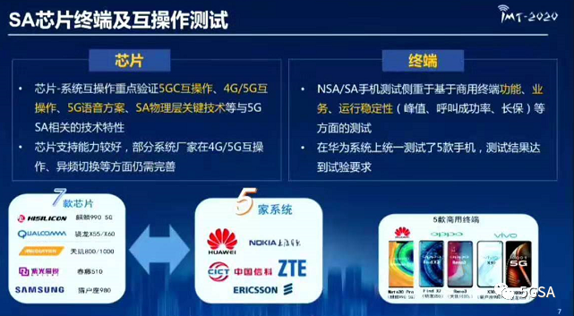 基本上,市面上主流的5G芯片这次都已经测到了。我们重点测了SA方面的一些工作,包括和5GC的互操作,4G和5G互通,5G的一个语音方案,还有SA特有的一些物理层方面的一些关键技术等等。