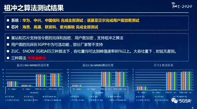 从测试情况看来说,所有基站和芯片对于信令面的完整性保护和加密,还有用户面的加密都没有问题的,同时也是支持祖冲之算法的。