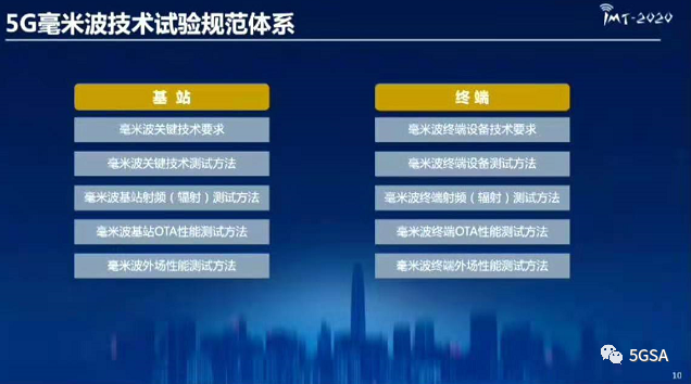 在5G毫米波里面,我们围绕整个内容一共制定了10本规范,面向基站和终端,大概是各5本。