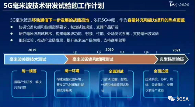 所以,我们在2019年围绕着这样一个目标制定了计划,分阶段推动5G毫米波产业逐步走向成熟。