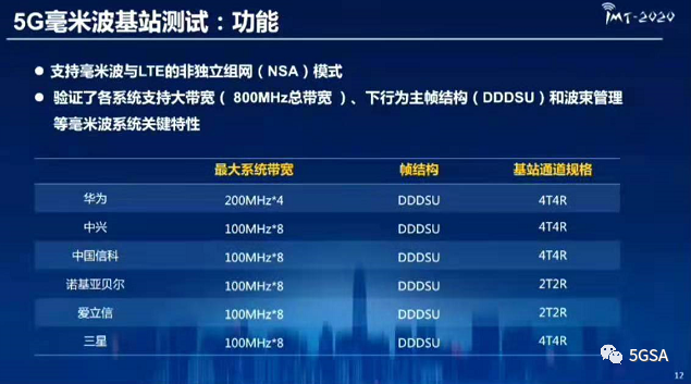 首先是在组网上,现在都只支持NSA。另外,载波带宽之前没有进行统一,所以,有的是100MHz带宽,也有200MHz带宽。我们已经根据产业界沟通,明确后续对毫米波建议使用200MHz大载波带宽,也欢迎基站厂家能够实现更大的400MHz,未来逐步提升能力。