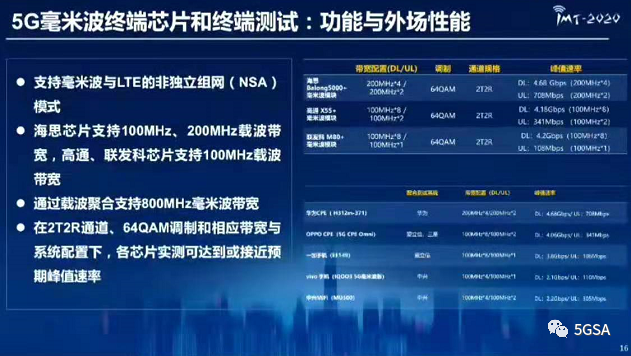 从测试情况来看,现在的毫米波产品,大家实现的还是和非独立组网(NSA)的一个模式。