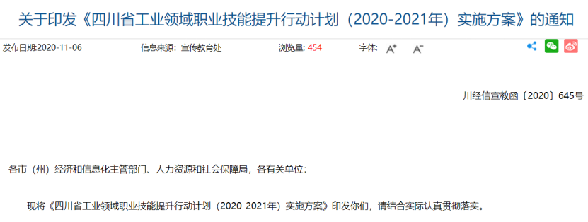 近日,四川省印发《四川省工业领域职业技能提升行动计划(2020—2021年)实施方案》,(以下简称《实施方案》)。