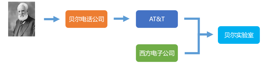 因此我们可以看出,贝尔实验室是AT&T创立的,和贝尔本人并没有直接关系(他1922年就去世了)。