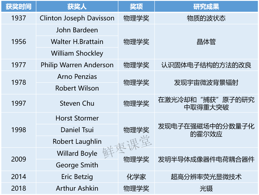 15位科学家获得诺贝尔奖;