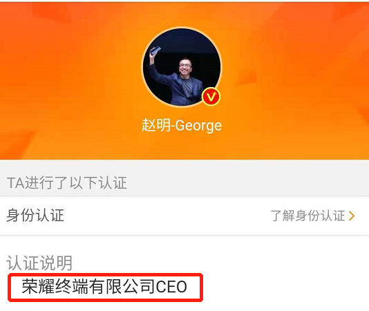 而查询赵明微博认证发现,已变更为 “荣耀终端有限公司 CEO”。