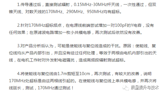 1. 由于超标频点较多且超标幅度较大,先在电源线上串共模电感,测试效果良好,15MHz 以前全部通过,但 26MHz-108MHz 仍超标,测试数据如下: