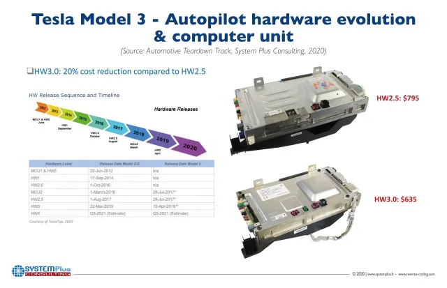 在 System Plus Consulting 最新发布的“引擎盖下(Under the Hood)”系列中,我们对 Tesla Model 3 进行了更深入的研究,重点关注 Model 3 中部署的汽车传感器和 Autopilot ECU Tesla。
