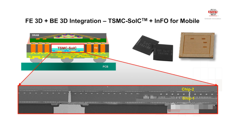 再就是对工艺流程的优化改造。为了应对摩尔定律接近失效的危机,仅仅从微缩晶体管,提高密度以提升芯片性能的角度正在失效。台积电推动了多项前段和后段的 3D 封装技术,来提升芯片性能。比如在芯片制造前段实现的 SOIC 3D 堆叠技术,在后段实现的 CoWoS 和 InFo 的 3D 封装技术。这些技术在帮助实现晶体管微缩的同时,进一步提高了良率。