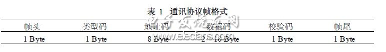 5)校验码:1个字节,本设计采用累加和校验,对帧头、类型码、地址码和数据域进行字节累加,结果取1个字节。集中器接收到指令后,对指令的相应字节进行累加,然后再与校验字相比较。