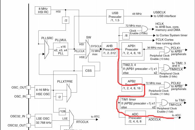 RCC_ADCCLKConfig(RCC_PCLK2_Div6); //72M/6=12,ADC最大时间不能超过14M