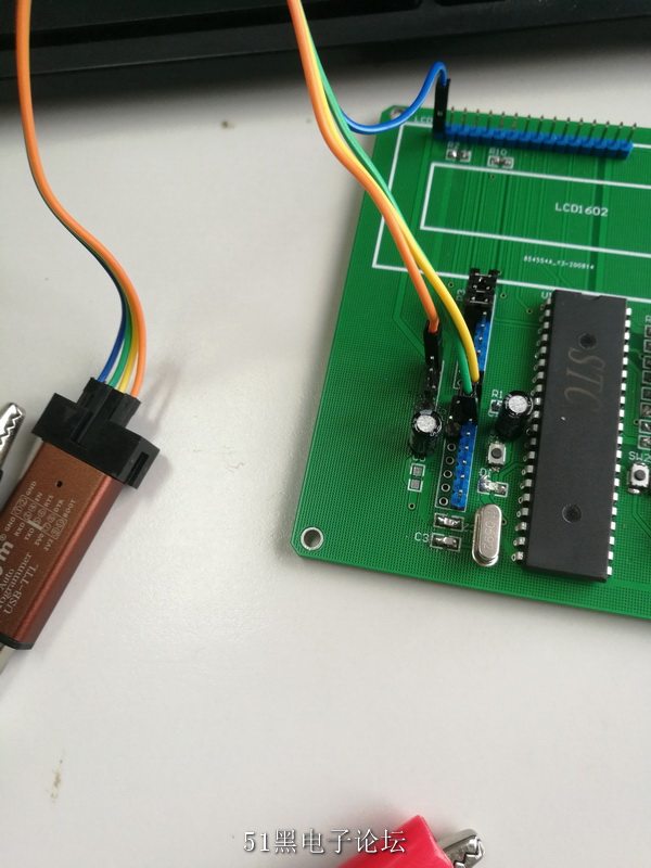 准备调试,这里有坑。烧录器怎么也不能识别单片机,检查晶振电路,晶振启震(可以用示波器看波形,也可以用万用表量电压,电压大概是1/2VCC)