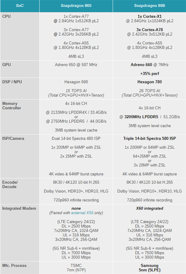 2020年12月05日 | 一图看懂骁龙888与骁龙865差异:性能大增