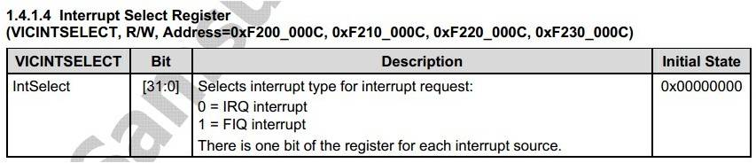 (2)VICINTSELECT(中断类型选择:irq或者fiq)