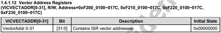 <2>、4组ISR数组的首地址分别存放在VICVECTADDR0~VICVECTADDR3中。