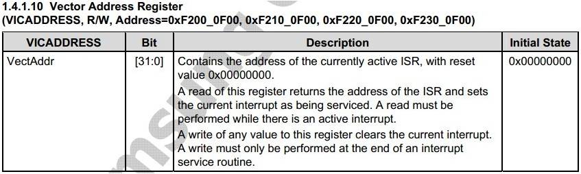 (2)、向VICxADDR写入任意值清中断