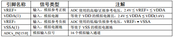 有 18 个通道,可测量 16 个外部和 2 个内部信号源。各通道的 A/D 转换可以单次、连续、扫描或间断模式执行 ;ADC的结果可以左对齐或右对齐方式存储在 16 位数据寄存器中 ;模拟看门狗特性允许应用程序检测输入电压是否超出用户定义的高 / 低阈值。