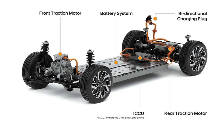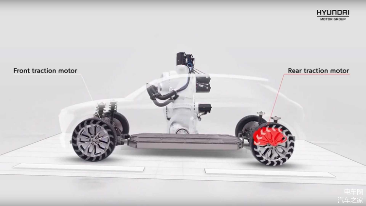 乍一看,E-GMP和很多其他平台一样:一个电机用于后轴,另一个电机用于前轴;它提供了全轮驱动,每个轴都可以独立控制;基于E-GMP打造的入门级车型将采用单电机后轮驱动,其余车型则为双电机全轮驱动,没有前轮驱动选项。