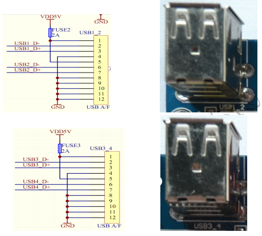 通过USB-HUB扩展的4路USBHOST接口,可外接USB-WIFI模块,USB3G模块,蓝牙模块,USB鼠标键盘,U盘等设备。
