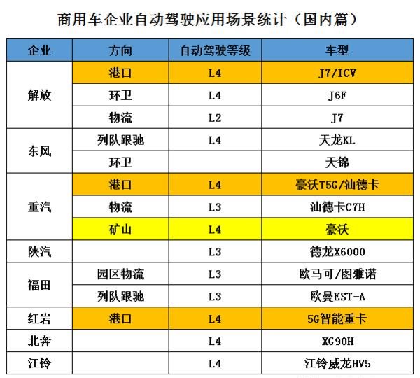 目前几乎所有的知名卡车制造商在自动驾驶领域都取得了不同的成果,其中港口、环卫以及其他封闭场景,自动驾驶实现程度最高,大部分都已达到L4,而列队跟驰这种智能化车队管理系统更是成为车企竞相研发的重点。