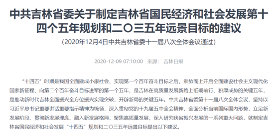 集微网消息,12月4日,中共吉林省委十一届八次全体会议通过《中共吉林省委关于制定吉林省国民经济和社会发展第十四个五年规划和二〇三五年远景目标的建议》(以下简称《规划建议》)。