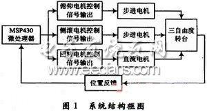 本文以MsP430F149单片机为主控芯片,步进电机和直流无刷电机为驱动元件,通过软件编程,制作了一台精度相对较高的三自由度转台。经过对转台的旋转控制,证明转台能平稳、精确地按照任意给定的位置信息转动,动态性能良好,系统稳定性和抗干扰能力强。