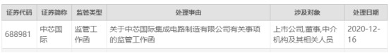 2020年12月17日 | 上交所发布中芯国际监管工作函,涉及董事等人