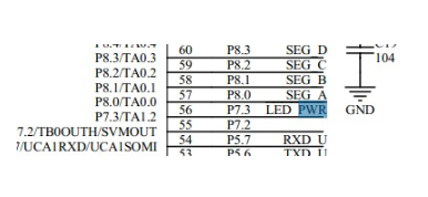 这里显示的是LED PWR是第P7.3管脚,即P7.3只需要输出一个低信号就可以了