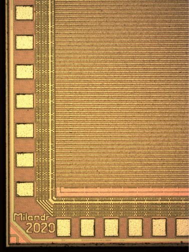 因此,如今设计的模具更紧凑,比之前的模具面积小2倍多。虽然最初有计划将模具减少到8平方毫米,但取得的效果也很好。鉴于此,模具的形状变成了矩形,而不是正方形。模具的上半部分是为模拟块而设计的,它的布局是为最初计划的尺寸而单独绘制的,当发现图形不合适时,模具就开始“长”成一个矩形。第一代芯片也出现了同样的情况。