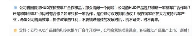 12月17日,水晶光电在互动平台上表示,公司HUD产品目前与多家整车厂合作开发中,水晶光电会紧跟项目进度,积极推动产品量产上市。