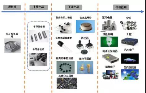 据招股书显示,中晶科技成立于2010年,注册资本为7481.30万元,是一家专注于半导体硅材料的研发、生产和销售的高新技术企业,主要产品为半导体硅片及硅棒,广泛应用于各类分立器件的制造,产品规格涵盖3~6英寸、N型/P型、0.0008Ω·cm~100Ω·cm阻值范围的硅棒及研磨片、化腐片、抛光片等,最终应用领域包括消费电子、汽车电子、家用电器、通讯安防、绿色照明、新能源等领域。